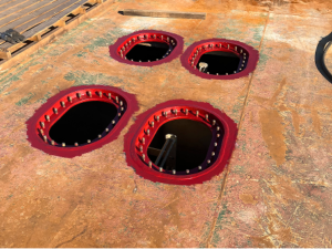 In addition to fabricating new manholes, we modified 86 existing manhole covers for another project. Over time, the original covers
